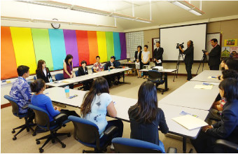 告知 2016.02.01今年で参加13回目となるユーロ青少年国際交流キャンプは、5カ国(ドイツ、ルクセンブルク、イスラエル、クロアチア、日本)からの学生が合流、長岡からは8名の高校生が参加し、体育館での合宿を通して、スポーツと・異文化交流をしました。フォートワースでの学校生活やホームステイ、ホノルルで学んだ平和について熱く語ります。