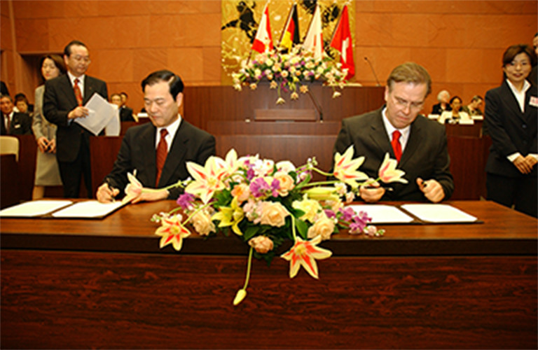 2006年4月1日、長岡市制施行100周年にあわせて再調印式を行い、今後の友好交流の継続を確認しました。